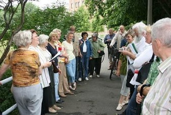 | Herzberg 15.07.2008 (Quelle: lr-online) Immer dem Wasser nach ![]() Über regen Zuspruch beim Stadtrundgang zum Thema "Wasser im historischen Stadtkern Herzberg" konnte sich Martina Heidrich (2.v.l.), Vorsitzende des Herzberger Kultur- und Heimatvereins, freuen. Während im Vorjahr der gleichen Einladung nur ein Interessierter gefolgt war, schlossen sich am Samstag fast 20 Männer und Frauen dem Spaziergang an. Gemeinsam mit ihrem Mann hatte Martina Heidrich diesen sorgsam vorbereitet. Beide verfolgen das Ziel, Geschichte erlebbar zu machen und die Menschen für die Vergangenheit zu interessieren. Mit den vielen Fakten, die sie zum Thema Wasser in der Stadt und zur Kulturgeschichte des Wassers zwischen Schwarzer Elster, Mühlgraben und Lapine am Samstag vermittelten, dürfte ihnen das durchaus gelungen sein. Foto: Dieter Müller |